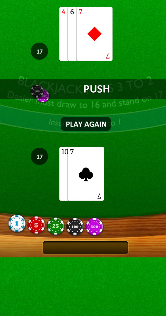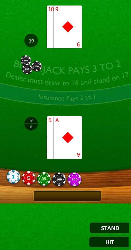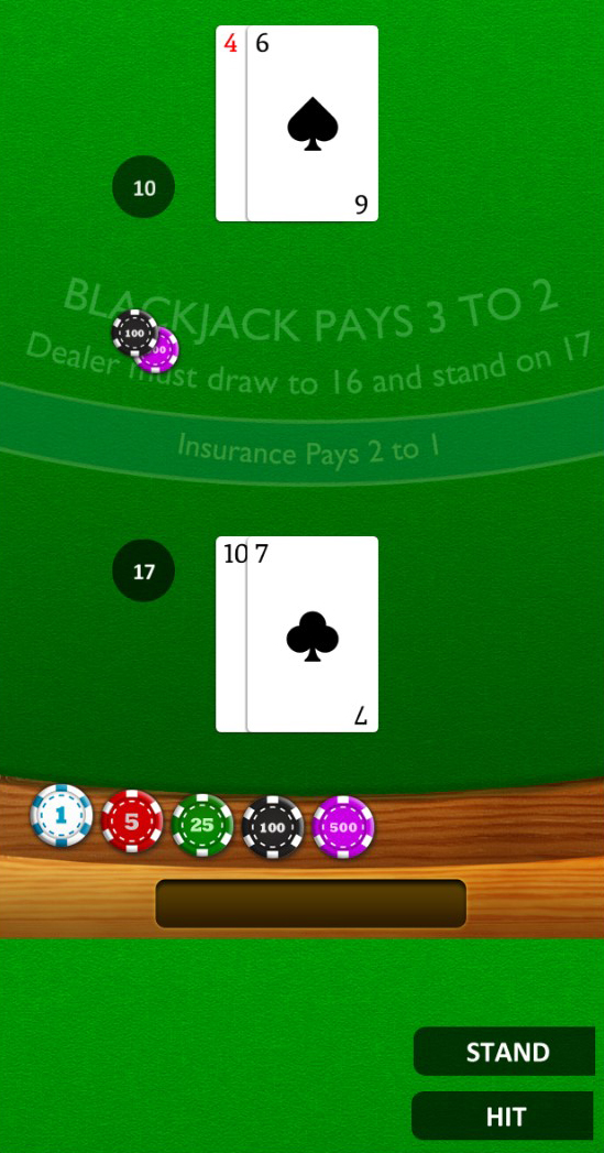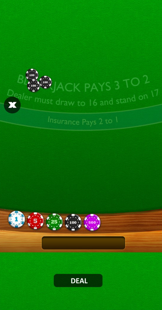 Bet $1, $5, $25, $100, $500 Dollar chips
